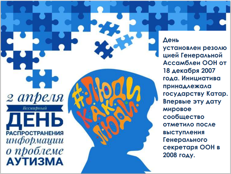 ВСЕМИРНЫЙ ДЕНЬ РАСПРОСТРАНЕНИЯ ИНФОРМАЦИИ О ПРОБЛЕМЕ АУТИЗМА